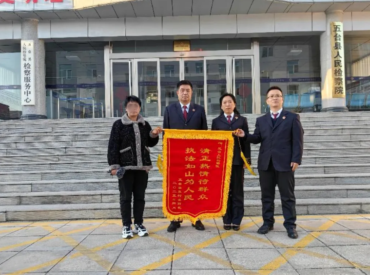 3月18日,五臺(tái)縣檢察院門(mén)口洋溢著融融暖意。當(dāng)事人崔女士心情激動(dòng),將一面繡有“清正熱情待群眾執(zhí)法如山為人民”的錦旗鄭重地送到檢察官手中,表達(dá)對(duì)檢察官依法履行民事支持起訴職能,為其排憂解難的誠(chéng)摯感激。