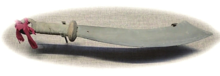 1941年,9歲的劉胡蘭上了抗日民主政府辦的冬學。1942年,劉胡蘭擔任了兒童團長。就是握著這把木制大刀,她經(jīng)常帶領(lǐng)小伙伴們站崗放哨,掩護抗日干部。