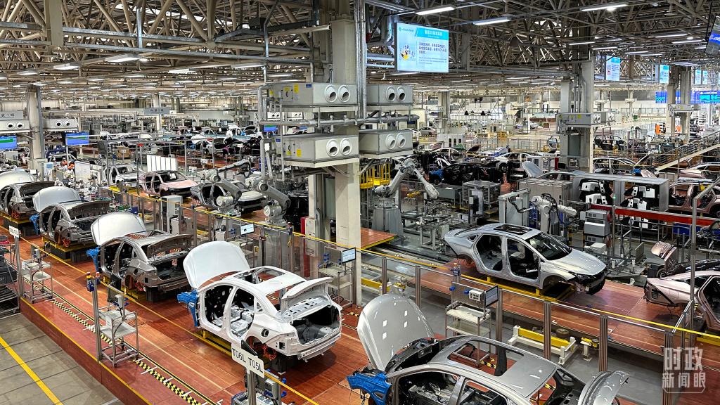 △廣汽埃安總裝車間智能生產(chǎn)線。(總臺(tái)央視記者趙化拍攝)